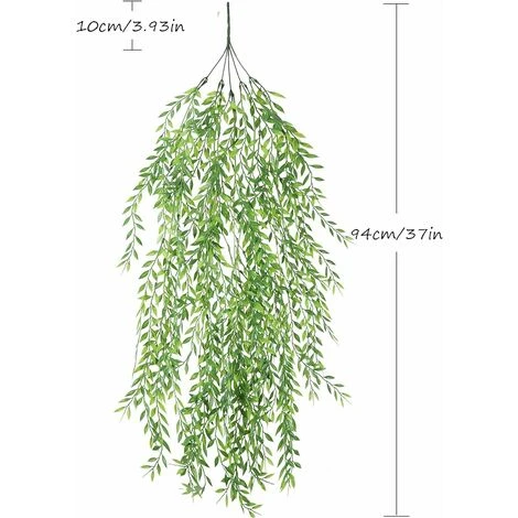 Plantes Artificielles Suspendre a 5 branches, la longueur totale de la plante tombante artificielle 94 cm, 2 pices au total incluses par paquet, veuillez noter que le panier suspendu n’est pas inclus.