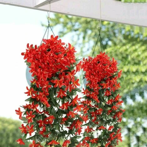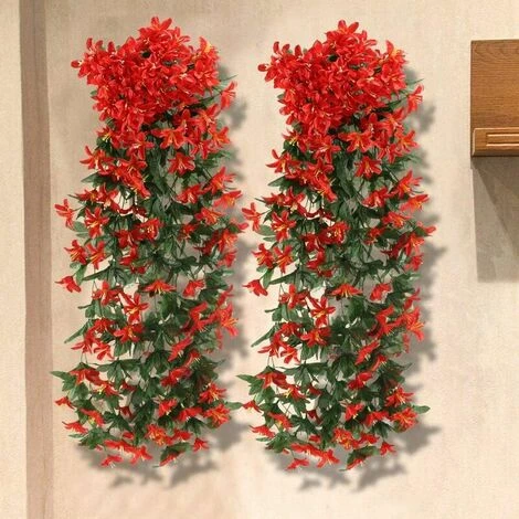 Artificielles retombantes plantes sont douces et dodues, avec de magnifiques petits lys rouges.L’apparence est naturelle, vive et unique, et elle vous apportera l’ultime belle expérience sensorielle. Les guirlandes de lierre suspendues peuvent être utilisées