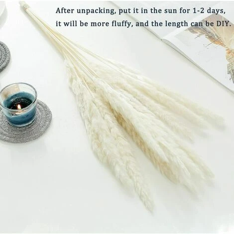 REMARQUE – La décoration de l’herbe de la pampa est très naturelle, elle peut perdre des plumes lors de la secousse, ne vous inquiétez pas, c’est normal. Après avoir reçu le paquet, vous pouvez placer l’herbe de pampa au soleil pendant 2-3 jours pour la rendre plus moelleuse.
