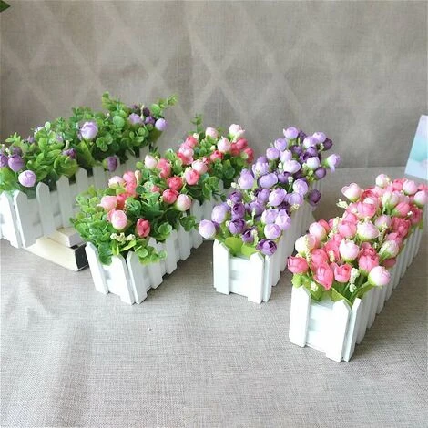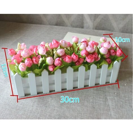 40 x fleurs artificielles, 2 x pot de clôture en bois