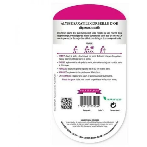 Des fleurs jaune d’or qui illumineront votre rocaille ou vos murets tous les printemps. Peu exigeante, elle se contente de soleil et d’un sol sec. Le semis permet de fleurir jardins et balcons de façon économique et facile.