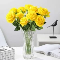 12 PCS Roses Artificielles, 50cm Seule Longue Tige Fausse Rose (Or)