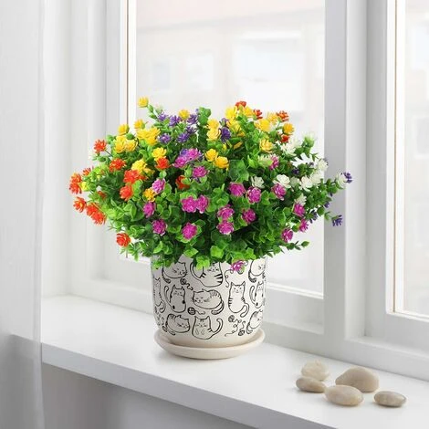 de la maison et la décoration extérieure du jardin. Il convient également parfaitement à la décoration de bureaux, de fêtes, d’hôtels, de restaurants, etc. [Sans entretien] Profitez de la beauté durable des fleurs réalistes sans vous soucier de la lumière du soleil, de l’arrosage, de la taille ou de tout autre entretien. Tous les bouquets sont en PE de haute qualité et, comme il n’y a pas de colle, il n’y