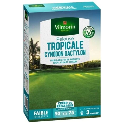 La Pelouse TROPICALE CYNODON DACTYLON est conçue par Vilmorin pour offrir un tapis végétal dense et verdoyant même dans les régions à climat chaud et sec. Cette pelouse est idéale pour les jardins, les espaces verts, les terrains de sport et autres zones de loisirs nécessitant une couverture végétale de qualité.