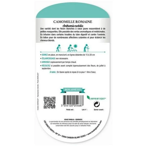 Une variété dont les fleurs blanches à cœur jaune ressemblent à de petites marguerites. Elle possède des vertus aromatiques et médicinales. En infusion dans certains troubles du tube digestif et contre l’anémie. En lotion pour de nombreuses affections cutanées et pour éclaircir les cheveux blonds.