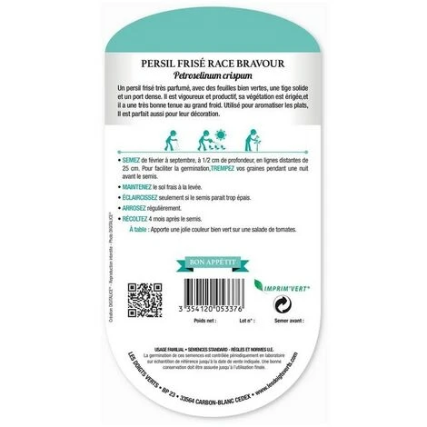 Un persil frisé trèsparfumé, avec des feuilles bien vertes, une tige solide et un port dense. Il est vigoureux et productif, sa végétation est érigée,et il a une très bonne tenue au grand froid. Utilisé pour aromatiser les plats, Il est parfait aussi pour leur décoration.