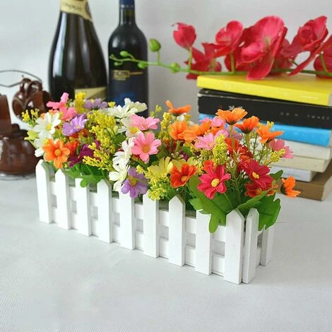 - Matériel: fleur de soie + clôture en bois, taille: environ 30 * 7,5 * 17cm. 2 pots de fleurs artificielles peuvent être placés n’importe où vous souhaitez décorer.
