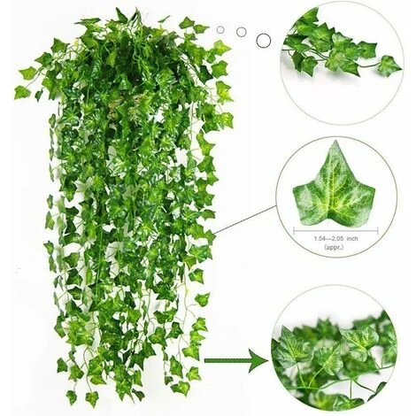 - Chaque liane suspendue à Ivy mesure environ 7 pieds de long, un total de 84 pieds, 80 feuilles avec un diamètre d’environ 1,4 à 1,8 pouces. Livraison avec 12x Ivy artificiel, vrille en plastique.