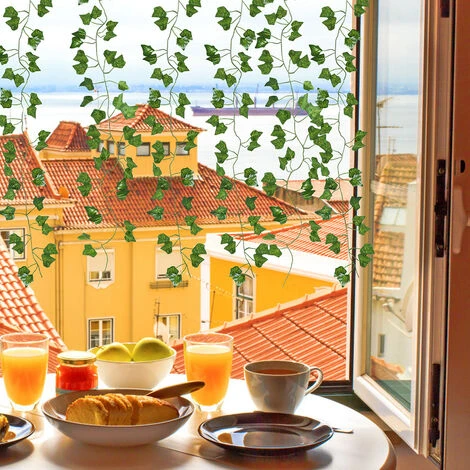 EFEU ARTIFICIEL:12 brins de lierre Guirlande suspendue de plantes. Chaque guirlande de lierre Artificiel mesure environ 2,4 m de long et comporte 80 feuilles d’une longueur totale de 28,8 m et d’une taille de feuille de 4 cm. Nous fournissons 50 attaches-câbles